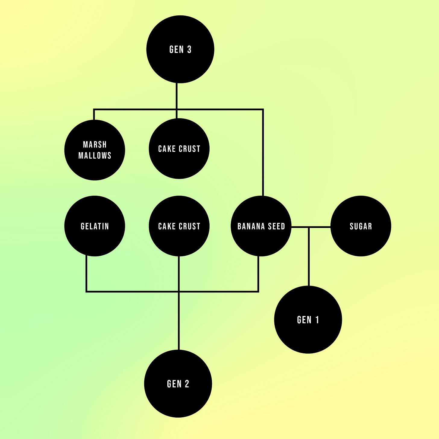 The third ingredient can be anything, such as an element from nature or the galaxy, though it is most often a baking ingredient. Adding a third ingredient to a creature’s makeup is not required. Yet, as they’ve been proven to affect creatures’ personalities, the demigods who made species with a specific trait in mind have been known to add a third ingredient. As such, god Piesang knew they needed an ingredient that was malleable enough to impart attributes that could assist the second generation in finding items. God Piesang eventually decided to use gelatin.